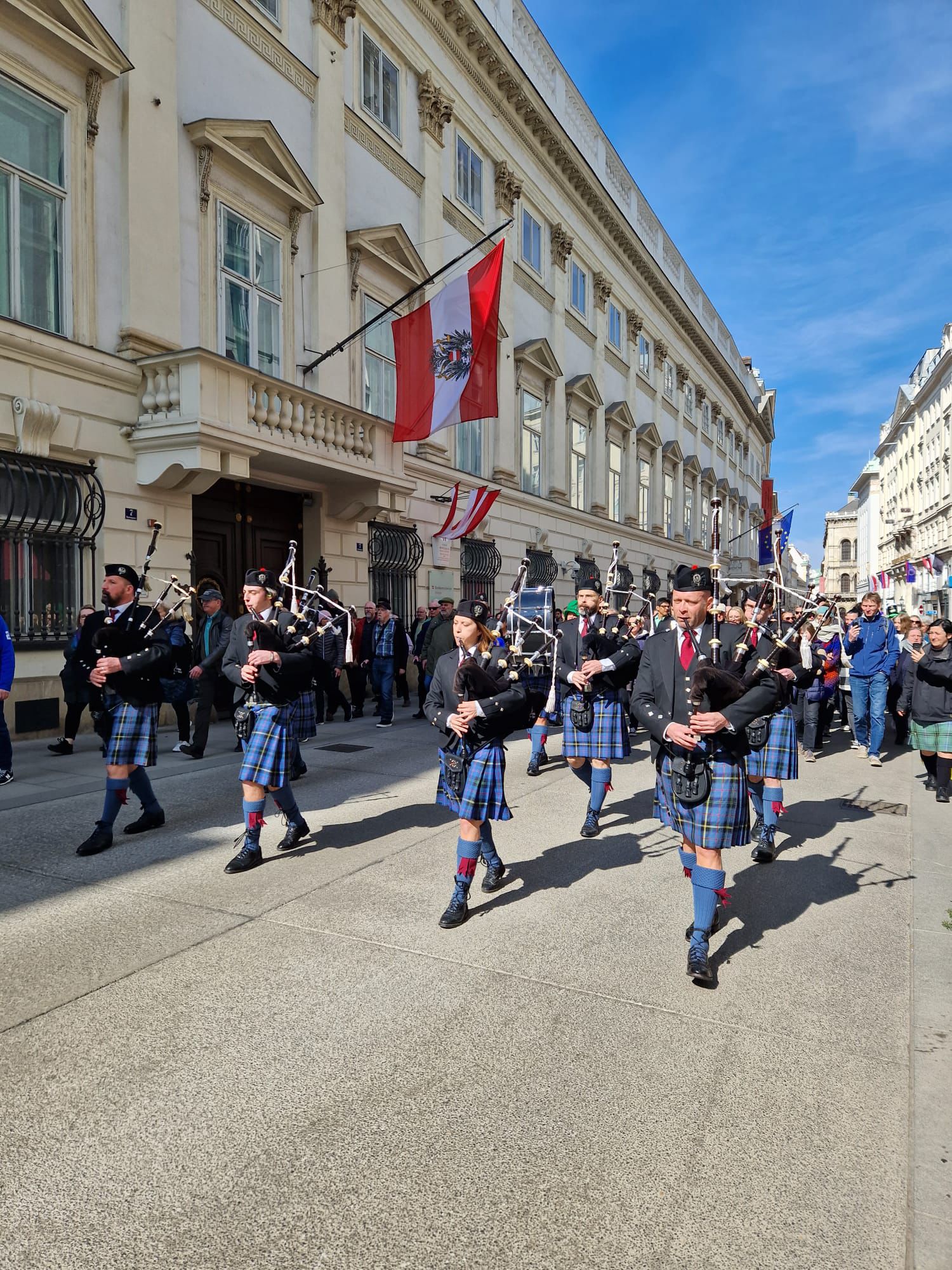 St. Patrick’s Day in Vienna is always one of the highlights of our year — and we would love to see you there. Come along, enjoy the atmosphere, and cheer us on as we bring the sound of the pipes to the heart of the city! 🍀🥁🎶